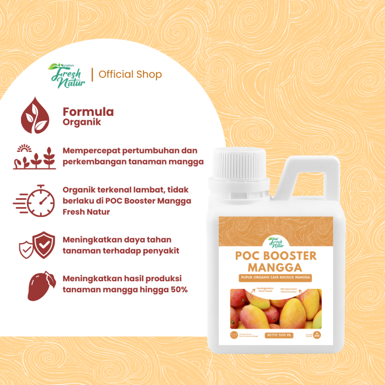 Pupuk POC BOOSTER MANGGA ini membuat rasa buah lebih manis, daging buah lebih tebal, lebih besar dan seragam. Serta membuat tanaman lebih tahan terhadap layu fusarium & layu bakteri karena adanya Zat Pengatur Tumbuh (ZPT) sekaligus dapat meningkatkan antibody tanaman.