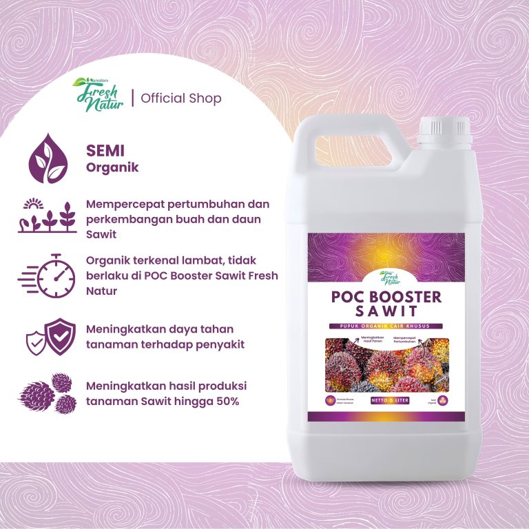 Pupuk POC BOOSTER SAWIT ini membuat rasa buah lebih manis, daging buah lebih tebal, lebih besar dan seragam. Serta membuat tanaman lebih tahan terhadap layu fusarium & layu bakteri karena adanya Zat Pengatur Tumbuh (ZPT) sekaligus dapat meningkatkan antibody tanaman.